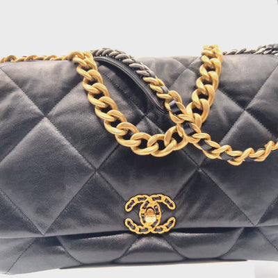 Chanel 19 Flap Bag in Black Quilted Lambskin with Mixed Chain Strap