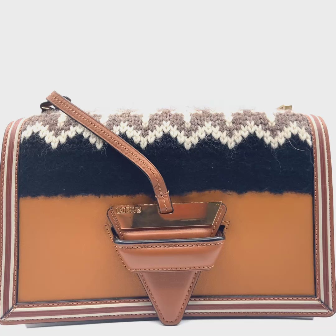 Pre-owned Loewe Puzzle Wallet on Chain in Tan Leather with Knit Wool Panel (Entrupy Certified)